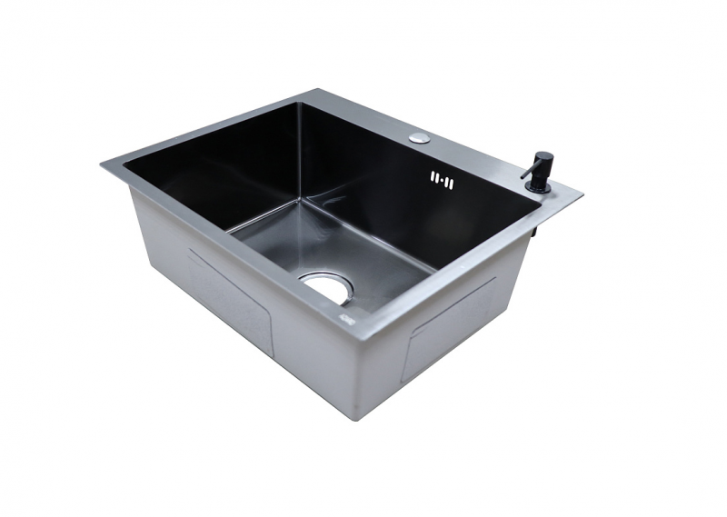 Мойка кухонная AZARIO NICOLE (600*500*220) нержавеющая сталь черная (сифон, диспенсер,коландер) Azario