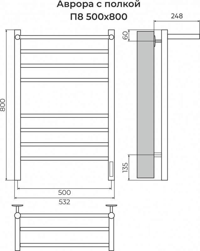 Полотенцесушитель Аврора П8 500х800 с/п Электро КС 9005 (quick touch) TERMINUS по низкой цене в наличии в интернет-магазине сантехники «Водолей» в Мамадыш. Мы предлагаем самую низкую цену на полотенцесушитель электрический производителя TERMINUS. Приобрести Полотенцесушитель Аврора П8 500х800 с/п Электро КС 9005 (quick touch) TERMINUS выгодно Вы можете on-line на нашем сайте, или отправив заявку по почте, а также по телефону 8 (927) 672-07-77 или в магазине.