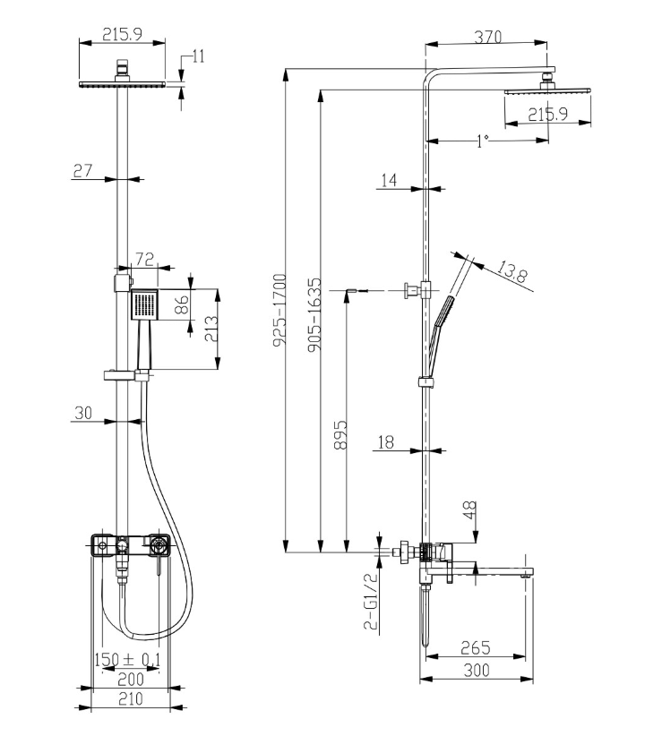 Смеситель для ванны с верх. душ. лейкой "Троп дождь", LM7004CS 1-ф.лейка, пов.излив 300мм, хр Lemark